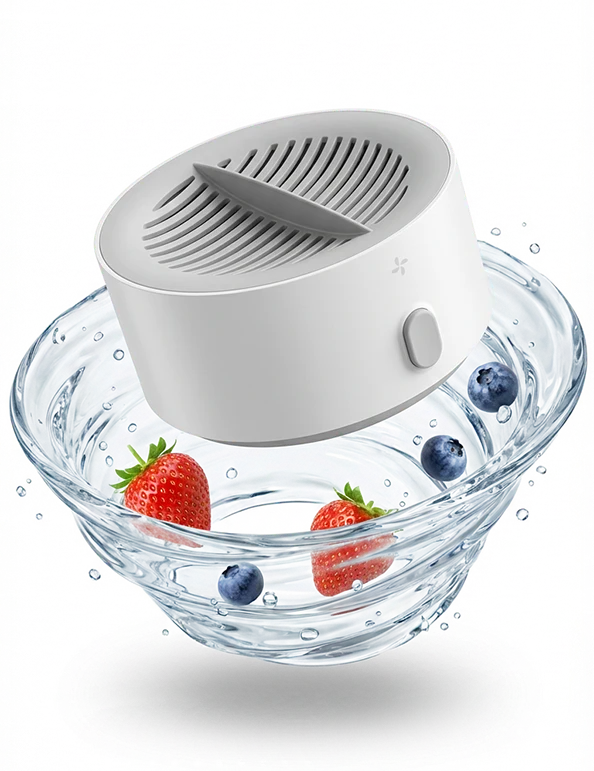 Creates millions of oxygen-rich micro bubbles that physically lift pesticides and chemicals off produce surfaces, not just rinse them.