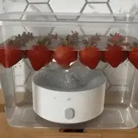 Drop in your fruits or vegetables. Press the power button to start the cleaning cycle